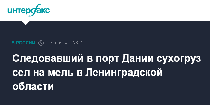 Следовавший в порт Дании сухогруз сел на мель в Ленинградской области