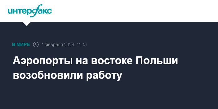 Москва. 7 февраля. INTERFAX.RU - Аэропорты в восточной части Польши восстановили деятельность, прерванную утром в субботу из-за действий военной авиации, сообщило Польское агентство аэронавигационного обслуживания (PANSA).