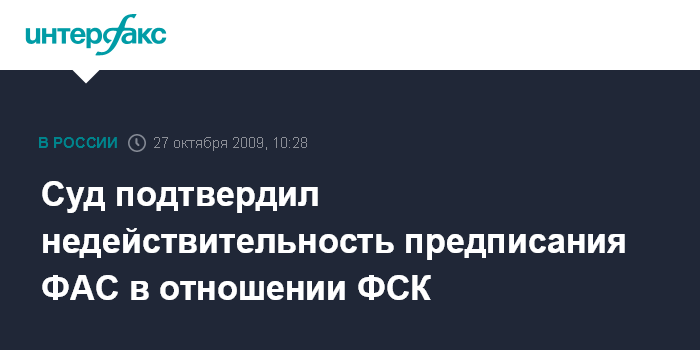 Суд подтвердил недействительность предписания ФАС в отношении ФСК