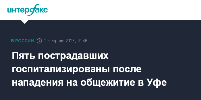 Москва. 7 февраля. INTERFAX.RU - Министр здравоохранения Башкирии Айрат Рахматуллин сообщил, что в больнице находятся пять из шести пострадавших в результате нападения на общежитие БГМУ в Уфе.