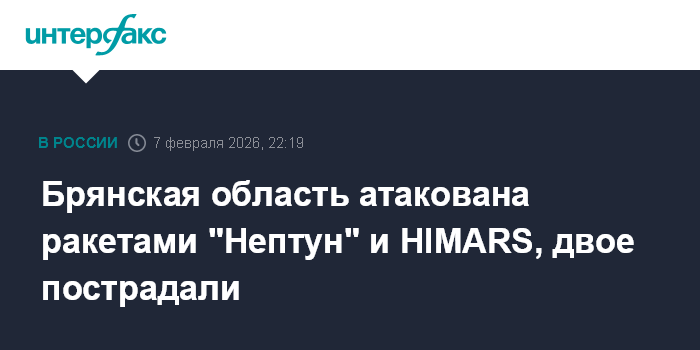 Москва. 7 февраля. INTERFAX.RU - Губернатор Брянской области Александр Богомаз заявил, что ВСУ атаковали регион ракетами "Нептун" и HIMAR, два человека пострадали, нарушено энергоснабжение в ряде муниципалитетов.