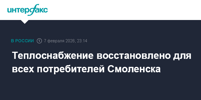 Теплоснабжение восстановлено для всех потребителей Смоленска