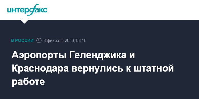 Москва. 8 февраля. INTERFAX.RU - Аэропорты Геленджика и Краснодара снова принимают и отправляют самолеты, сообщил официальный представитель Росавиации Артем Кореняко.