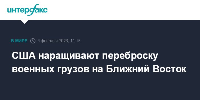 Москва. 8 февраля. INTERFAX.RU - Военно-транспортная авиация ВВС США продолжает наращивать переброску военных грузов на Ближний Восток, следует из данных авиационных ресурсов Flightradar24 и ADS-B Exchange.