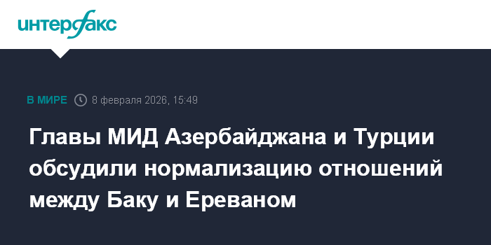 Главы МИД Азербайджана и Турции обсудили нормализацию отношений между Баку и Ереваном