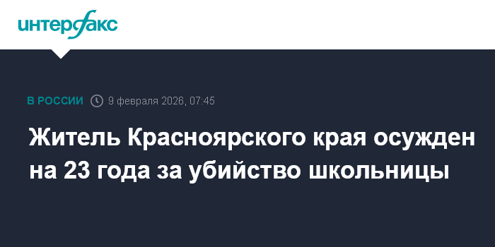 Житель Красноярского края осужден на 23 года за убийство школьницы
