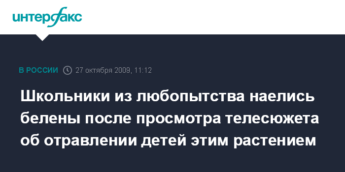 Школьники из любопытства наелись белены после просмотра телесюжета об отравлении детей этим растением