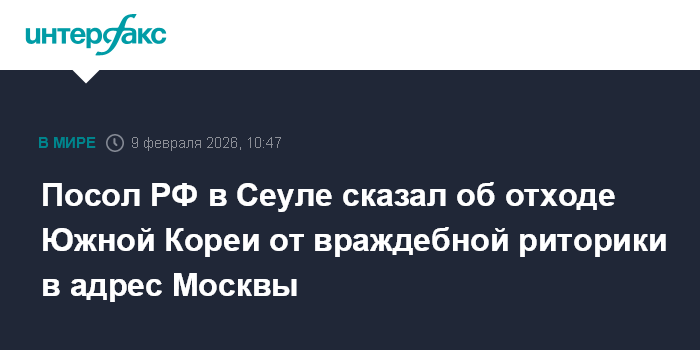"Вместе с тем, не все так мрачно. Сеул воздержался от поставок вооружений и военной техники киевскому режиму, что позволило сохранить основу российско-южнокорейских отношений. В отличие от большинства других недружественных государств, здесь нет русофобии", - сказал он в интервью "Интерфаксу", приуроченному к отмечаемому 10 февраля Дню дипломата.