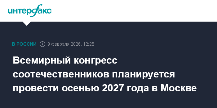 Всемирный конгресс соотечественников планируется провести осенью 2027 года в Москве