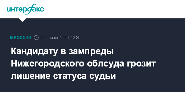 Москва. 9 февраля. INTERFAX.RU - Нижегородскому судье, планировавшему занять должность заместителя председателя Нижегородского областного суда, грозит лишение статуса за нарушение антикоррупционного законодательства.