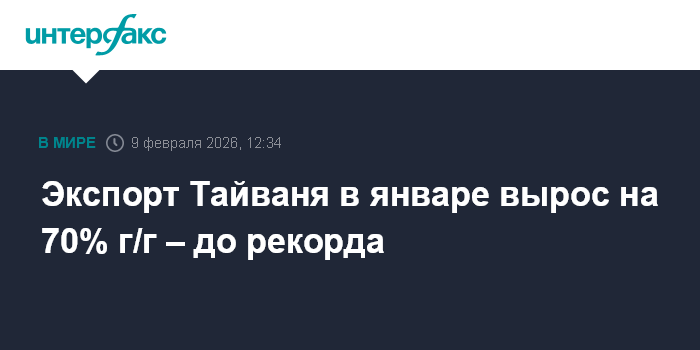 Экспорт Тайваня в январе вырос на 70% г/г – до рекорда