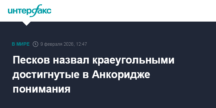 Москва. 9 февраля. INTERFAX.RU - Именно понимания, достигнутые в Анкоридже, позволят выйти на прорыв в урегулировании украинского конфликта, заявил пресс-секретарь президента РФ Дмитрий Песков.