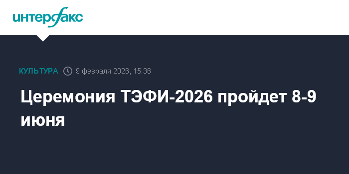 Москва. 9 февраля. INTERFAX.RU - Победителей Национальной телевизионной премии ТЭФИ в 2026 году назовут 8 и 9 июня, сообщили "Интерфаксу" в фонде "Академия российского телевидения".