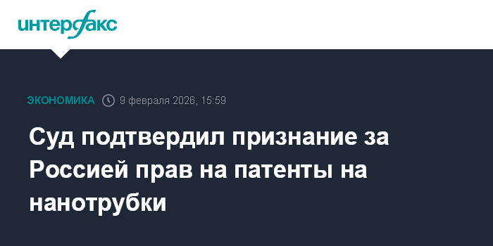 Москва. 9 февраля. INTERFAX.RU - Президиум суда по интеллектуальным правам оставил в силе решение о признании за Россией прав на три патента, связанных с получением углеродных нанотрубок, говорится в картотеке арбитражных дел.