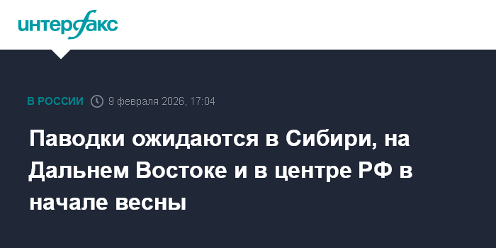 Паводки ожидаются в Сибири, на Дальнем Востоке и в центре РФ в начале весны