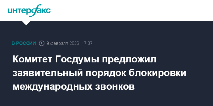 Москва. 9 февраля. INTERFAX.RU - Комитет Госдумы по информационной политике считает целесообразным установить заявительный порядок блокировки входящих международных звонков вместо предложенного правительством автоматического запрета по умолчанию, комитет также рекомендовал доработать нормы работы с единым реестром "подозрительных" абонентских номеров.