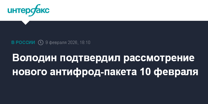 Володин подтвердил рассмотрение нового антифрод-пакета 10 февраля