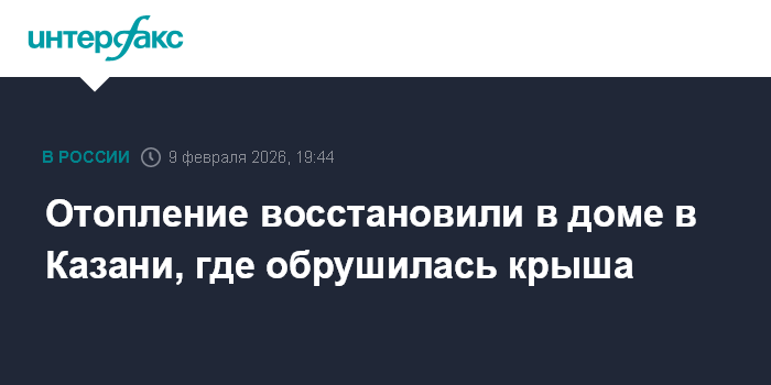 Москва. 9 февраля. INTERFAX.RU - В пятиэтажном доме по улице Беломорская, 71А в Казани, где в понедельник произошло обрушение крыши над двумя подъездами, полностью восстановили отопление, сообщается в официальном телеграм-канале администрации Кировского и Московского районов Казани.