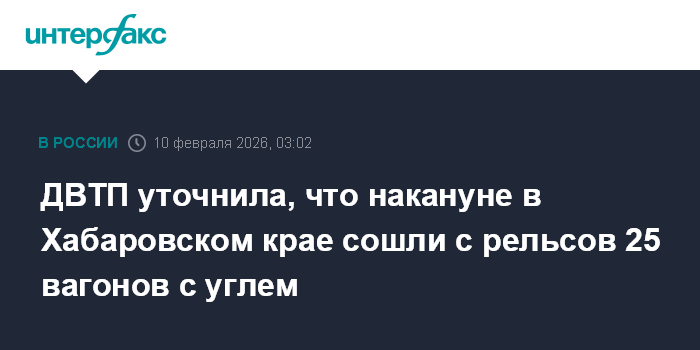 Ранее сообщалось, что 9 февраля около 21:00 (14:00 по Москве) на перегоне Датта-Кенада между станциями Высокогорная и Советская Гавань в Хабаровском крае сошли с рельсов 10 вагонов с углем, 8 из них опрокинулись.