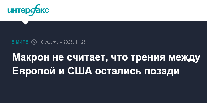Москва. 10 февраля. INTERFAX.RU - Отношения Европы и США остаются напряженными на фоне притязаний президента США Дональда Трампа на Гренландию, заявил во вторник французский президент Эммануэль Макрон в интервью газете Le Monde и ряду других европейских изданий.
