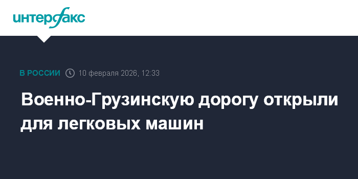 Москва. 10 февраля. INTERFAX.RU - В Северной Осетии возобновилось движение легкового транспорта возобновлено на участке Военно-Грузинской дороги, сообщили в управлении МЧС по республике.