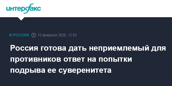 Москва. 10 февраля. INTERFAX.RU - Россия даст на попытки подорвать ее суверенитет ответ, который будет неприемлем для ее противников, заявил НТВ министр иностранных дел Сергей Лавров.