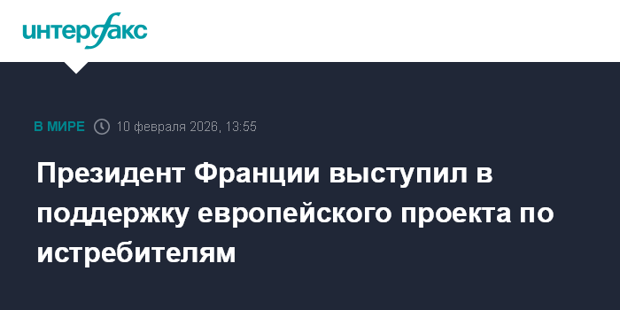 Москва. 10 февраля. INTERFAX.RU - Президент Франции Эммануэль Макрон считает, что европейские страны должны реализовать проект разработки истребителя следующего поколения (Future Combat Air System, FCAS), поскольку он перспективен. Он сказал об этом в интервью европейским СМИ, в том числе Le Monde.