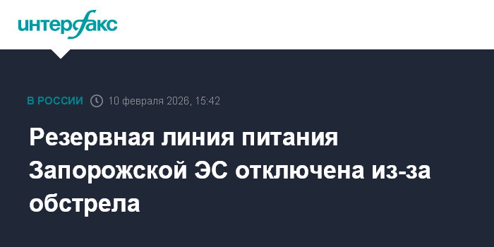 Москва. 10 февраля. INTERFAX.RU - Резервная линия электроснабжения Запорожской АЭС - 330 кВ "Ферросплавная-1" - отключена в результате обстрела со стороны ВСУ, сообщили представители станции во вторник.