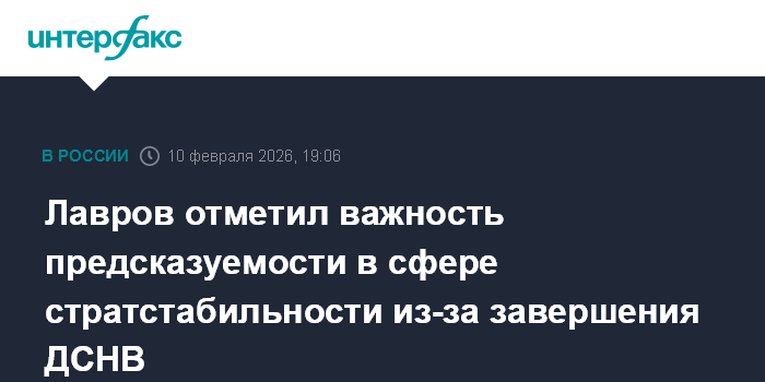 Москва. 10 февраля. INTERFAX.RU - России предстоит обеспечить необходимый уровень предсказуемости в сфере стратегической стабильности после истечения срока Договора о мерах по дальнейшему сокращению и ограничению стратегических наступательных вооружений (ДСНВ), заявил во вторник глава МИД РФ Сергей Лавров.