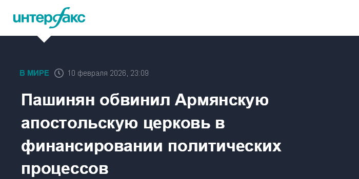 Москва. 10 февраля. INTERFAX.RU - Премьер-министр Армении Никол Пашинян обвинил Армянскую апостольскую церковь в теневом финансировании политических процессов.