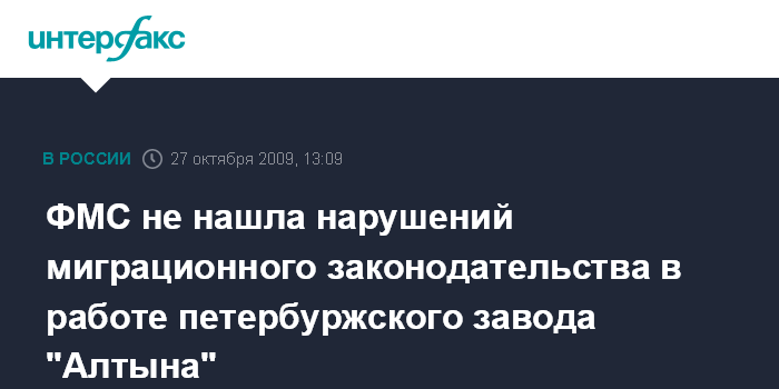 ФМС не нашла нарушений миграционного законодательства в работе петербуржского завода "Алтына"