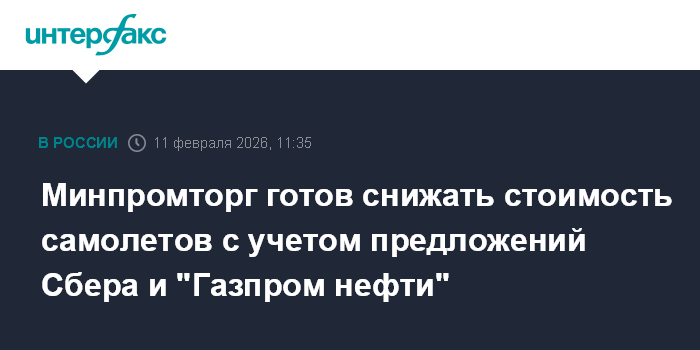 Минпромторг готов снижать стоимость самолетов с учетом предложений Сбера и "Газпром нефти"