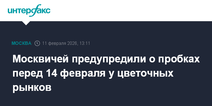 Москва. 11 февраля. INTERFAX.RU - В Москве 13 февраля возможны пробки рядом с цветочными рынками и местами проведения досуга, предупредил городской Департамент транспорта со ссылкой на прогноз Центра организации дорожного движения.