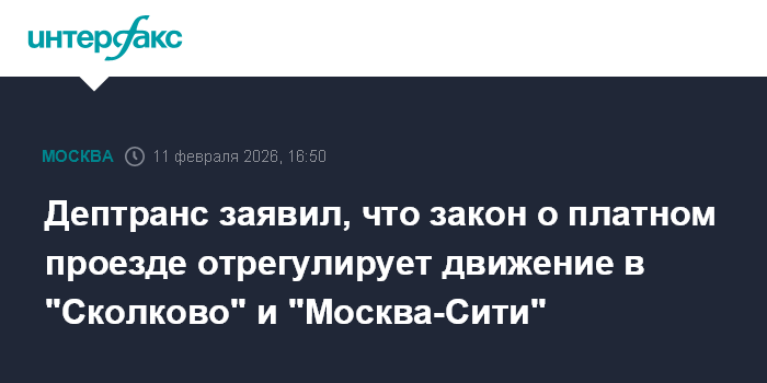 Дептранс заявил, что закон о платном проезде отрегулирует движение в "Сколково" и "Москва-Сити"