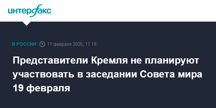 Представители Кремля не планируют участвовать в заседании Совета мира 19 февраля