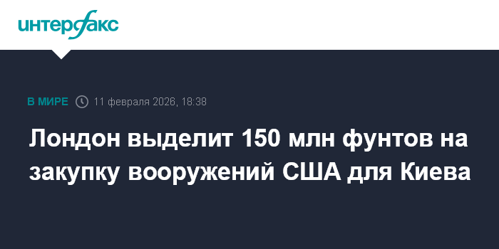 Москва. 11 февраля. INTERFAX.RU - Великобритания согласилась выделить 150 млн фунтов на закупку американских вооружений для Украины в рамках инициативы НАТО под названием PURL (Prioritised Ukraine Requirements List), сообщает Politico со ссылкой на министра обороны страны Джона Хили.