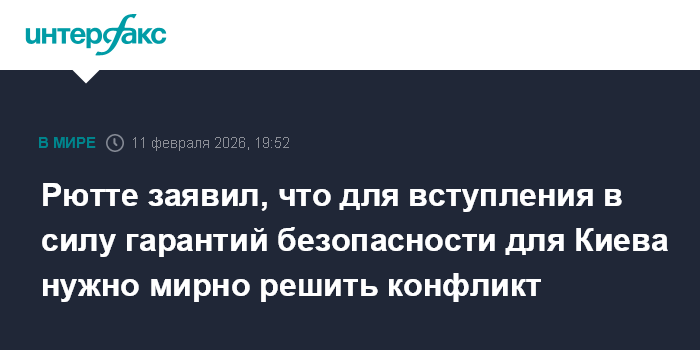 Москва. 11 февраля. INTERFAX.RU - Мирное решение украинского конфликта необходимо для вступления в действие гарантий безопасности для Украины, заявил в среду генеральный секретарь НАТО Марк Рютте.