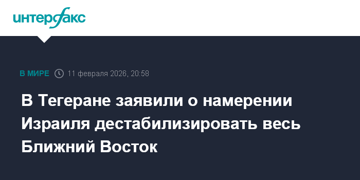 В Тегеране заявили о намерении Израиля дестабилизировать весь Ближний Восток