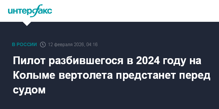 Пилот разбившегося в 2024 году на Колыме вертолета предстанет перед судом