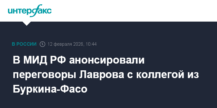 В МИД РФ анонсировали переговоры Лаврова с коллегой из Буркина-Фасо
