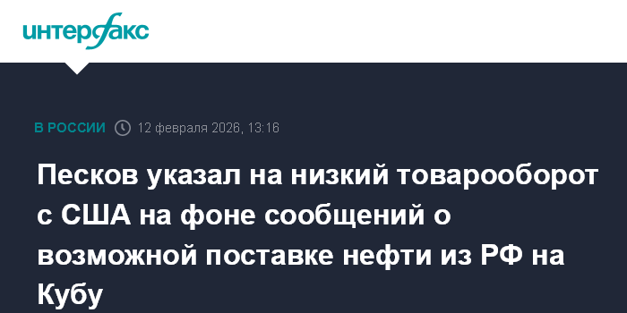 Песков указал на низкий товарооборот с США на фоне сообщений о возможной поставке нефти из РФ на Кубу