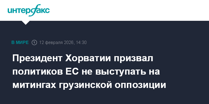 Президент Хорватии призвал политиков ЕС не выступать на митингах грузинской оппозиции