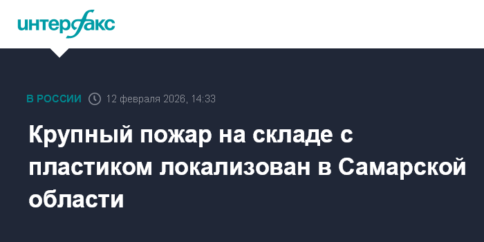 Москва. 12 февраля. INTERFAX.RU - Пожарные локализовали возгорание на складе с пластиковой продукцией в поселке Алексеевка Самарской области, сообщает пресс-служба Главного управления МЧС по региону в четверг.