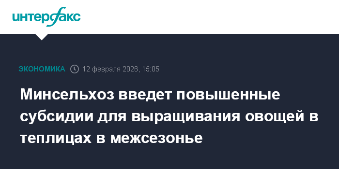 Москва. 12 февраля. INTERFAX.RU - Минсельхоз РФ планирует ввести повышающий коэффициент для субсидирования овощеводов, выращивающих свою продукцию с 1 января по 30 апреля.