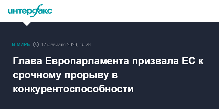Глава Европарламента призвала ЕС к срочному прорыву в конкурентоспособности