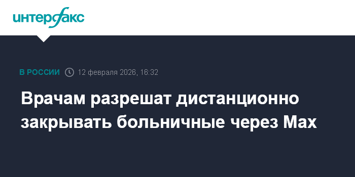 Москва. 12 февраля. INTERFAX.RU - Лечащие врачи могут дистанционно проверить состояние здоровья пациента и при подтвержденном восстановлении трудовой функции закрыть ему больничный с использованием мессенджера Max, говорится в документе Минздрава. Документ есть в распоряжении "Интерфакса".