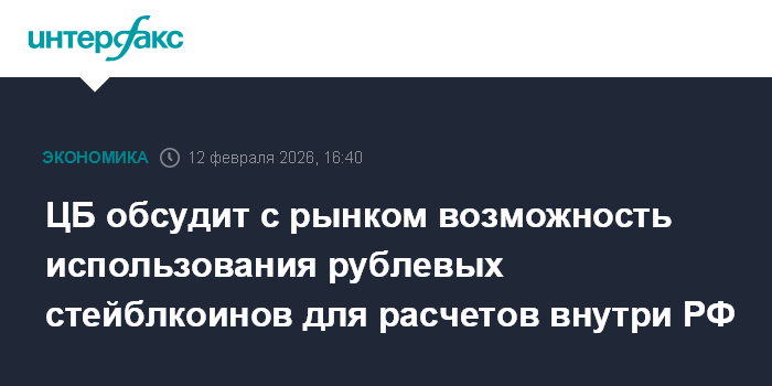 Москва. 12 февраля. INTERFAX.RU - ЦБ планирует провести исследование и обсудить с рынком тему использования рублевого стейблкоина для расчетов внутри страны, заявил первый зампред Банка России Владимир Чистюхин.