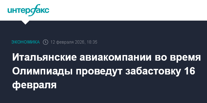 Итальянские авиакомпании во время Олимпиады проведут забастовку 16 февраля