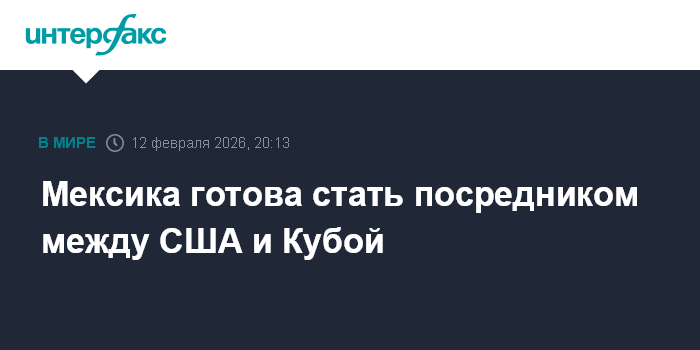 Москва. 12 февраля. INTERFAX.RU - Мексика готова выступить посредником в диалоге между Вашингтоном и Гаваной в условиях нефтяной блокады Кубы со стороны США, заявила президент Мексики Клаудиа Шейнбаум. Об этом сообщает EFE.