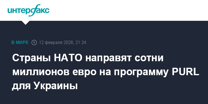 Москва. 12 февраля. INTERFAX.RU - Страны НАТО объявили о направлении сотен миллионов евро на программу PURL (Prioritised Ukraine Requirements List) для того, чтобы Украина получила необходимое американское оборудование, заявил на пресс-конференции генсек НАТО Марк Рютте.